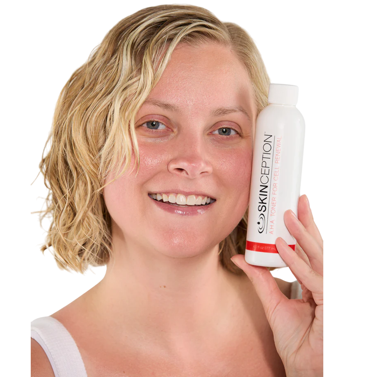 Skinception® A.H.A. Toner For Cell Renewal is designed to minimize the pH disruption caused by many cleansers.