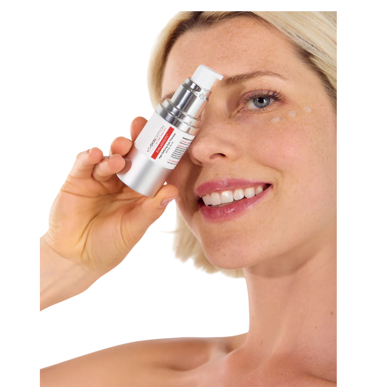 But that's exactly what it does, because Eyelasticity™ is formulated with a series of patented peptides that tighten and restore youth to this tell-tale area.
